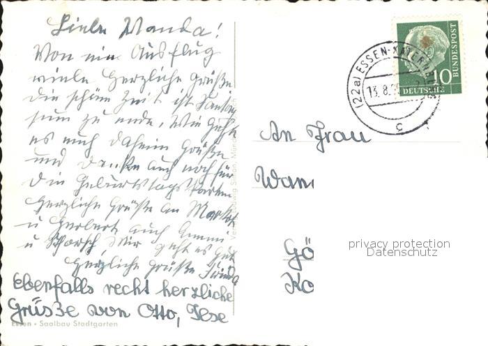72411356 alte Postkarte Essen Ruhr Saalbau Stadtgarten postalisch gelaufen Erhaltung siehe scans KatCode: 11110005113000