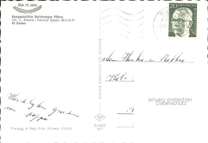 71993160 alte Postkarte Essen Ruhr Seegaststaette Baldeneyer Faehre postalisch gelaufen Erhaltung siehe scans KatCode: 11110005113000
