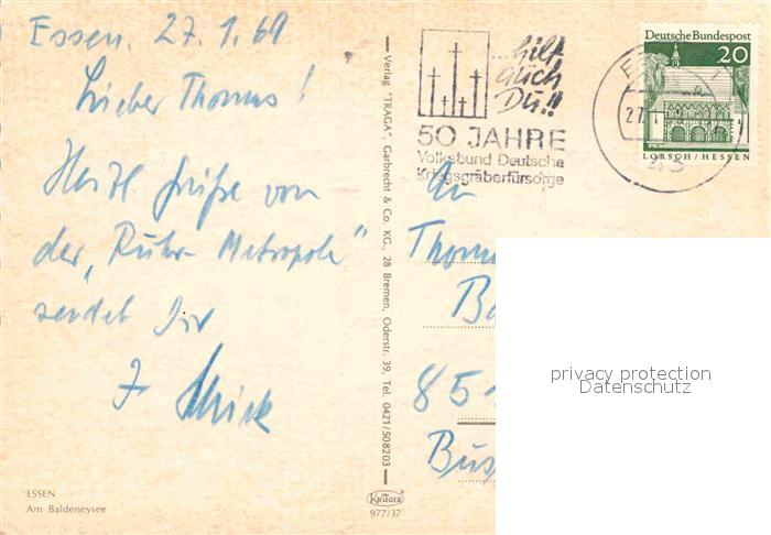72806763 alte Postkarte Essen Ruhr Seglerhafen am Baldeneysee postalisch gelaufen Erhaltung siehe scans [FriedD77] KatCode: 11110005113000