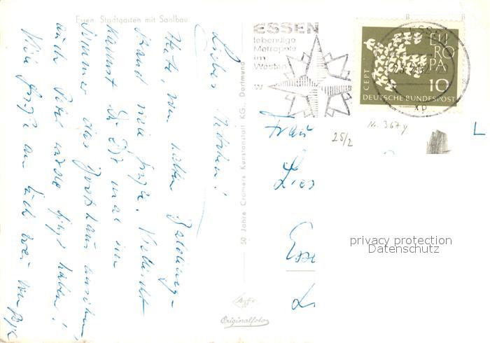 73290800 alte Postkarte Essen Ruhr Stadtgarten mit Saalbau postalisch gelaufen Erhaltung siehe scans [WerneD78] KatCode: 11110005113000