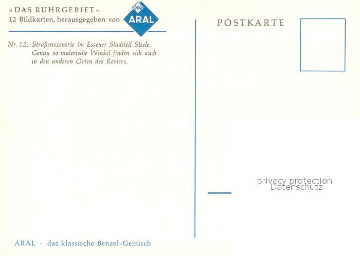 73145044 Essen Ruhr Strassenszenerie im Stadtteil Steele Serie Das Ruhrgebiet 12 Bildkarten von Aral Nr 12 Kuenstlerkarte postalisch nicht gelaufen Erhaltung siehe scans [FriedD77] KatCode: 11110005113000