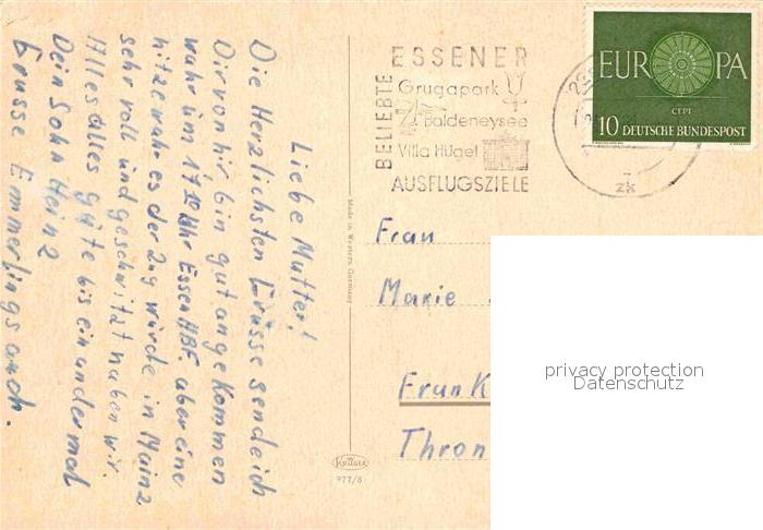 72823088 alte Postkarte Essen Ruhr Teilansicht Gruga Park Baldeneysee postalisch gelaufen Erhaltung siehe scans [AndreD76] KatCode: 11110005113000