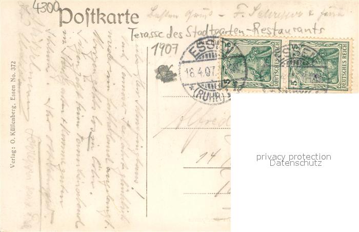 73754241 alte Postkarte Essen Ruhr Terrasse im Stadtgarten-Restaurant postalisch gelaufen Erhaltung siehe scans [LiesaD40] KatCode: 11110005113000