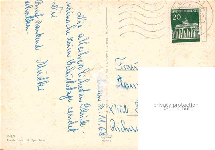 72843596 alte Postkarte Essen Ruhr Theaterplatz mit Opernhaus postalisch gelaufen Erhaltung siehe scans [LiesaD40] KatCode: 11110005113000