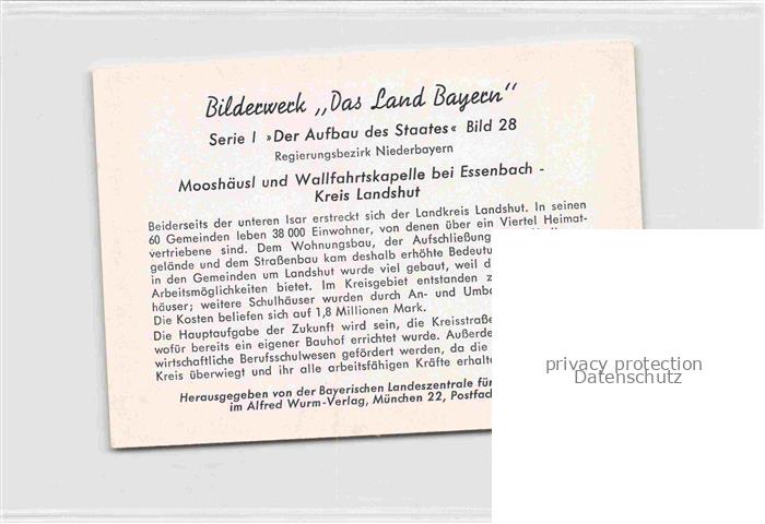 Essenbach Niederbayern Landshut Mooshaeusl und Wallfahrtskapelle postalisch nicht gelaufen Werbekarte (keine Postkarte) Erhaltung siehe scans [WerneD78] Werbekarte (keine Postkarte) Wern Katcode 11110009274128
