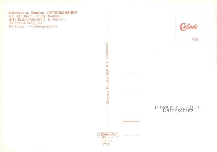 74049290 Essing Gasthaus Pension Ritterschenke Burg Altmuehltal postalisch nicht gelaufen Fliegeraufnahme Erhaltung siehe scans [FriedD77] KatCode: 11110009273121