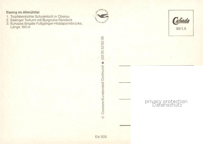 73215324 Essing Tropfsteinhoehle Schulerloch Burgruine Randeck Holzspannbruecke postalisch nicht gelaufen Erhaltung siehe scans [PaolaD17] KatCode: 11110009273121