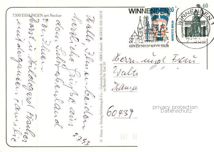 73241208 alte Postkarte Esslingen Neckar postalisch gelaufen Erhaltung siehe scans [LiesaD40] KatCode: 11110008116019