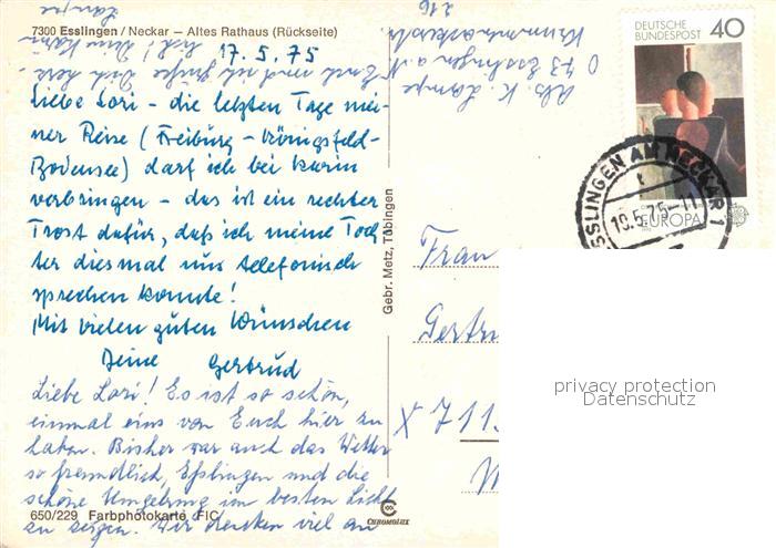 72647488 alte Postkarte Esslingen Neckar Altes Rathaus postalisch gelaufen Erhaltung siehe scans [WerneD78] KatCode: 11110008116019