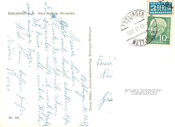 73867646 alte Postkarte Esslingen Neckar Altes Rathaus postalisch gelaufen Erhaltung siehe scans [WerneD78] KatCode: 11110008116019