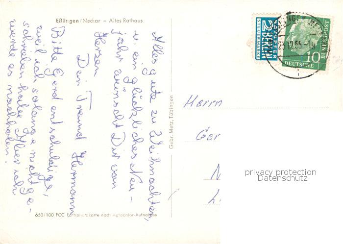73867647 alte Postkarte Esslingen Neckar Altes Rathaus bei Nacht postalisch gelaufen Erhaltung siehe scans [WerneD78] KatCode: 11110008116019