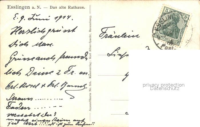 71839639 alte Postkarte Esslingen Neckar Altes Rathaus Kuenstlerkarte Marschall postalisch gelaufen Erhaltung siehe scans KatCode: 11110008116019