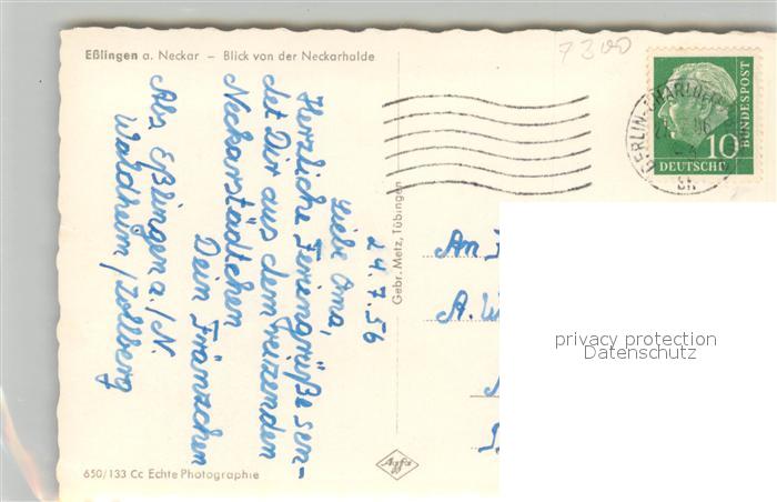 43348723 alte Postkarte Esslingen Neckar Blick von der Neckarhalde postalisch gelaufen Erhaltung siehe scans [KathaD81] KatCode: 11110008116019