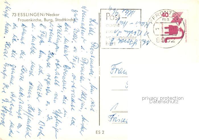 73126939 alte Postkarte Esslingen Neckar Frauenkirche Burg Stadtkirche postalisch gelaufen Erhaltung siehe scans [KathaD81] KatCode: 11110008116019