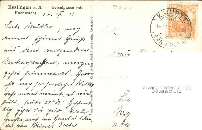 71510586 alte Postkarte Esslingen Neckar Geiselgasse mit Hochwacht Kuenstlerkarte postalisch gelaufen Erhaltung siehe scans KatCode: 11110008116019