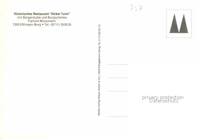 72662242 Esslingen Neckar Historisches Restaurant Dicker Turm Buergerstube Burgschenke postalisch nicht gelaufen Erhaltung siehe scans [FriedD77] KatCode: 11110008116019