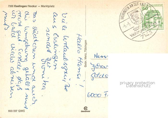 73082846 alte Postkarte Esslingen Neckar Marktplatz postalisch gelaufen Erhaltung siehe scans [FriedD77] KatCode: 11110008116019