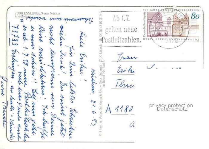 72687971 alte Postkarte Esslingen Neckar Marktplatz Kirche Hotels Fachwerkhaeuser postalisch gelaufen Erhaltung siehe scans [FriedD77] KatCode: 11110008116019