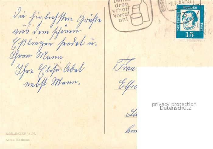 73608931 alte Postkarte Esslingen Neckar Rathaus postalisch gelaufen Erhaltung siehe scans [WerneD78] KatCode: 11110008116019