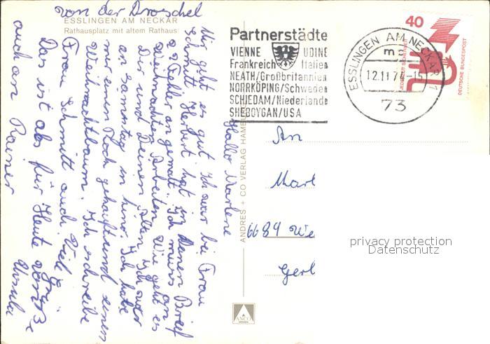 72097497 alte Postkarte Esslingen Neckar Rathausplatz mit altem Rathaus postalisch gelaufen KatCode: 11110008116019