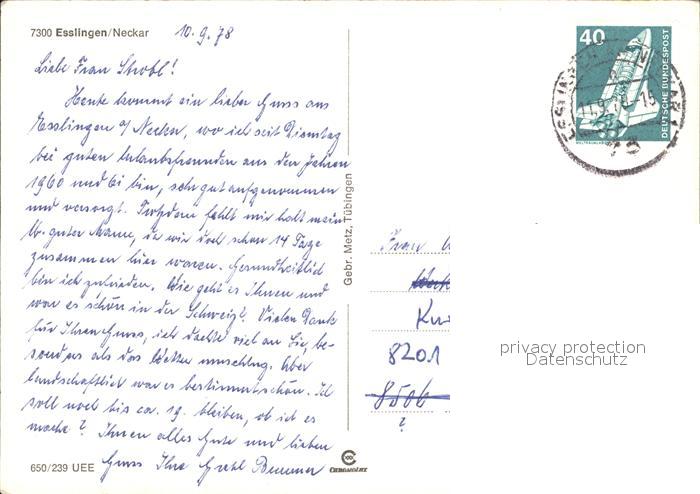 72311554 alte Postkarte Esslingen Neckar Stadtansicht postalisch gelaufen Erhaltung siehe scans KatCode: 11110008116019