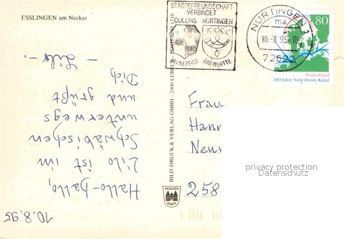 72692781 alte Postkarte Esslingen Neckar Stadtbild mit Kirche postalisch gelaufen Erhaltung siehe scans [FriedD77] KatCode: 11110008116019