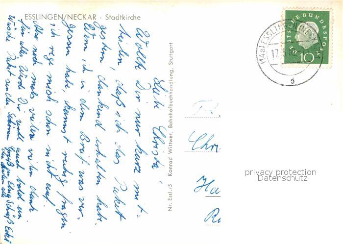 72772483 alte Postkarte Esslingen Neckar Stadtkirche postalisch gelaufen Erhaltung siehe scans [WerneD78] KatCode: 11110008116019