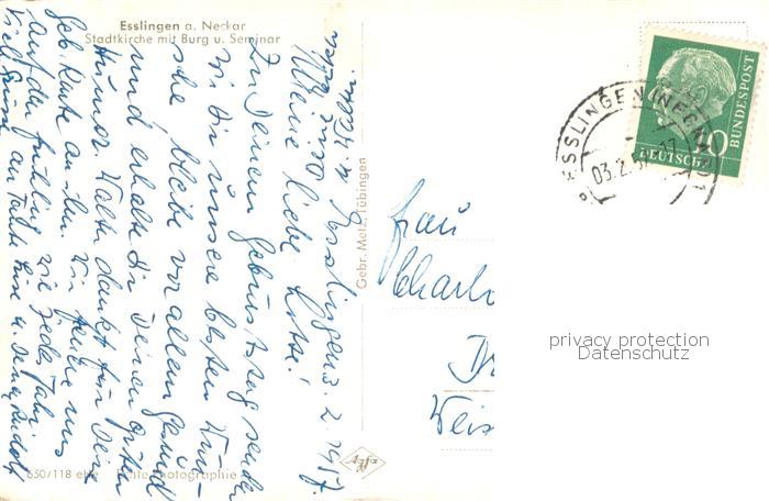 73770207 alte Postkarte Esslingen Neckar Stadtkirche mit Burg und Seminar postalisch gelaufen Erhaltung siehe scans [WerneD78] KatCode: 11110008116019