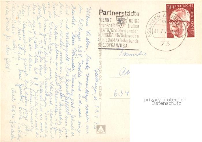 73212674 alte Postkarte Esslingen Neckar Teilansicht Kirche Rathausplatz Marktplatz postalisch gelaufen Erhaltung siehe scans [FriedD77] KatCode: 11110008116019