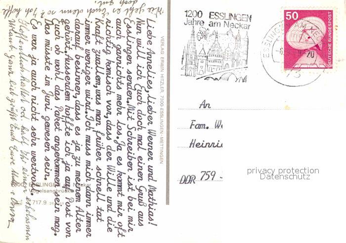 72746033 alte Postkarte Esslingen Neckar Vogelsangbruecke postalisch gelaufen Erhaltung siehe scans [FriedD77] KatCode: 11110008116019