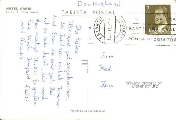 old postcard Estartit Hotel Garbi postalisch gelaufen Erhaltung siehe scans