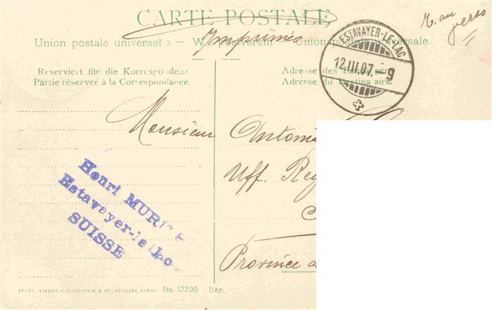 13974804 alte Postkarte Estavayer -le-Lac FR Hôtel Bellevue postalisch gelaufen Erhaltung siehe scans [FriedD77] KatCode: 11470070255946