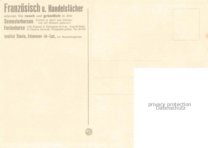 34144448 Estavayer -le-Lac FR Institut Stavia postalisch nicht gelaufen Erhaltung siehe scans [WerneD78] KatCode: 11470070255946