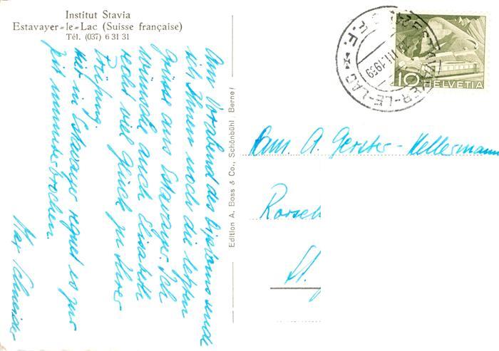 13873273 alte Postkarte Estavayer -le-Lac FR Institut Stavia postalisch gelaufen Fliegeraufnahme Erhaltung siehe scans [FriedD77] KatCode: 11470070255946
