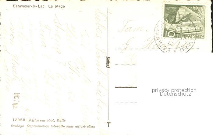 11853514 alte Postkarte Estavayer-le-Lac La plage postalisch gelaufen Erhaltung siehe scans KatCode: 11470070255946