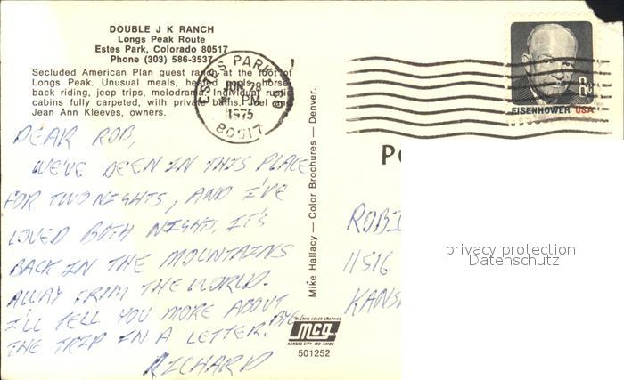 72316481 old postcard Estes Park Double J.K. Ranch postalisch gelaufen Erhaltung siehe scans KatCode: 14140060000000