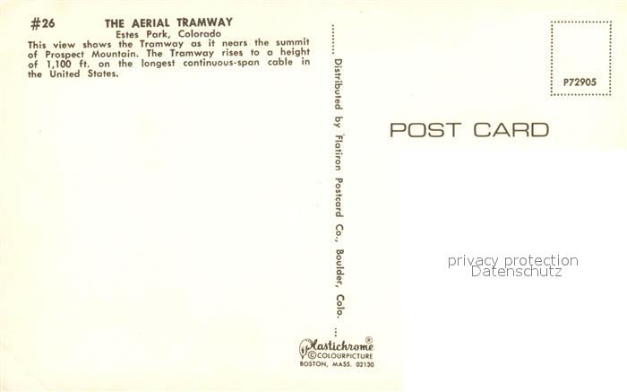 73257875 Estes Park Seilbahn postalisch nicht gelaufen Erhaltung siehe scans [NatalD47] KatCode: 14140060000000