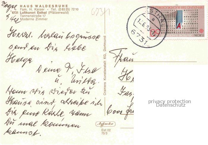 74046711 alte Postkarte Esthal Haus Waldesruhe Fliegeraufnahme Pool Gaststub postalisch gelaufen Erhaltung siehe scans [WerneD78] KatCode: 11110007332016