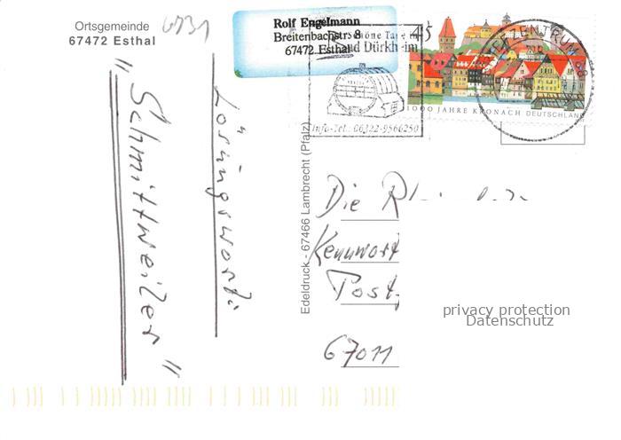74046860 alte Postkarte Esthal Panorama Ruine Brunnen Waldpartie postalisch gelaufen Erhaltung siehe scans [WerneD78] KatCode: 11110007332016