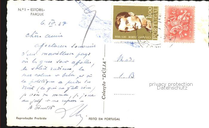 old postcard Estoril Parque postalisch gelaufen Erhaltung siehe scans