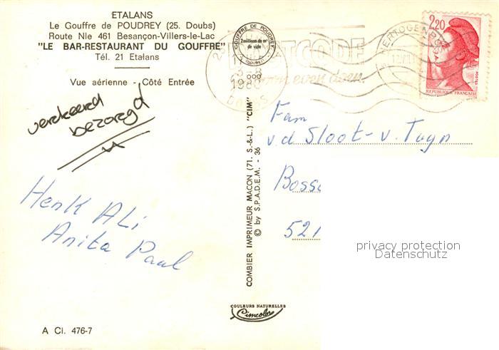 13059210 carte postale Etalans Le Gouffre de Poudrey Bar Restaurant postalisch gelaufen Erhaltung siehe scans [WerneD78] KatCode: 11170025125222