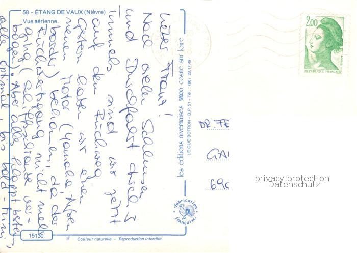 13848019 Etang de Vaux Chatillon-en-Bazois 58 Nievre Vue aerienne postalisch gelaufen Erhaltung siehe scans [WerneD78] carte postale Wern Katcode 11170058158065