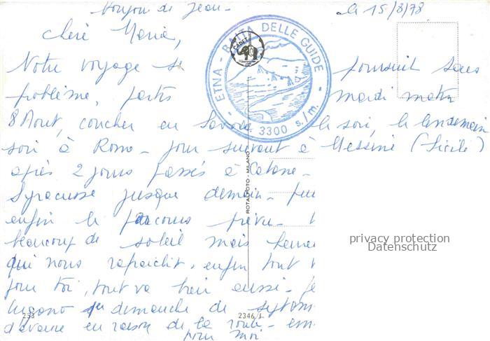 74050913 old postcard Etna Catania Sicilia Vulcano IT Vulkanaktivitaeten Panorama postalisch gelaufen Erhaltung siehe scans [WerneD78] KatCode: 11240