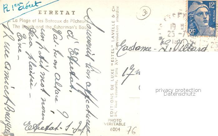 13487192 carte postale Etretat Plage et Bateaux de Pecheurs postalisch gelaufen Erhaltung siehe scans [LiesaD40] KatCode: 11170076276254