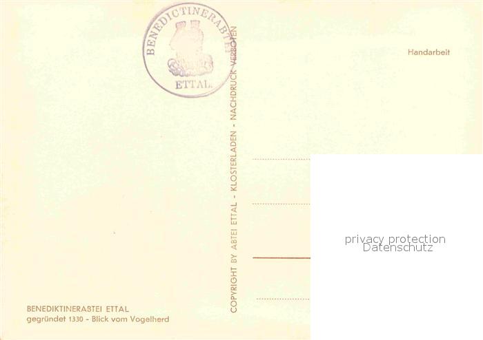 72694046 Ettal Benediktinerabtei Panorama Blick vom Vogelherd Handarbeit postalisch nicht gelaufen Erhaltung siehe scans [FriedD77] KatCode: 11110009180115