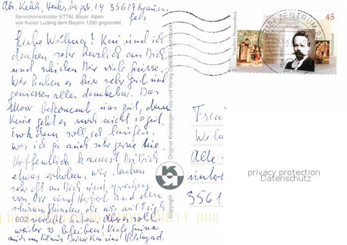 72851015 alte Postkarte Ettal Benediktinerkloster postalisch gelaufen Erhaltung siehe scans [NatalD47] KatCode: 11110009180115