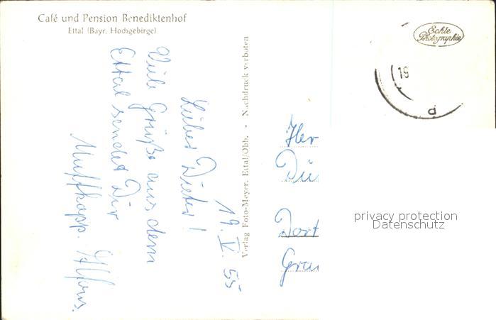 72028701 alte Postkarte Ettal Cafe Pension Benediktenhof mit Kofel postalisch gelaufen Erhaltung siehe scans KatCode: 11110009180115