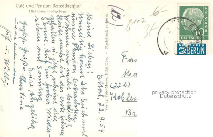 73650626 alte Postkarte Ettal Cafe Pension Benediktenhof mit Kofel postalisch gelaufen Erhaltung siehe scans [WerneD78] KatCode: 11110009180115