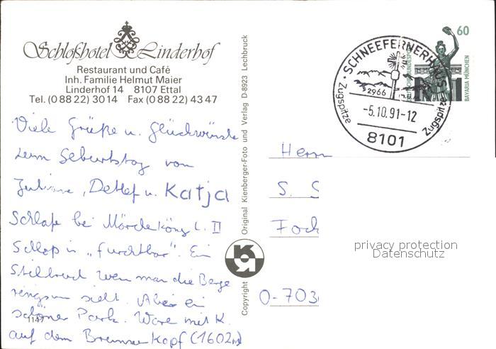 72371017 alte Postkarte Ettal Cafe Restaurant Linderhof Hotel postalisch gelaufen Erhaltung siehe scans KatCode: 11110009180115