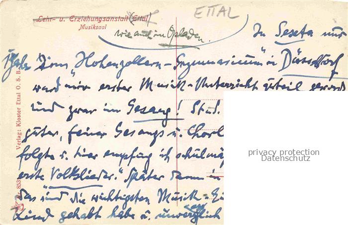 74029088 ETTAL Garmisch-Partenkirchen Lehr und Erziehungsanstalt Musiksaal postalisch nicht gelaufen Erhaltung siehe scans [WerneD78] KatCode: 11110009180115